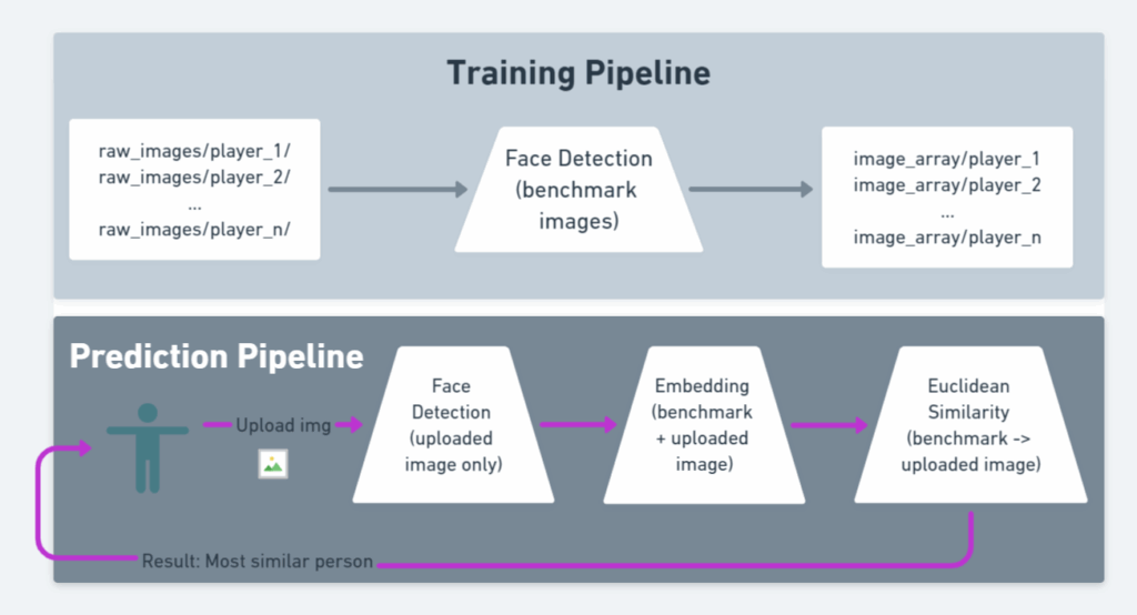 Le pipeline complet (détection + embedding + comparaison) constitue le pipeline de prédiction.